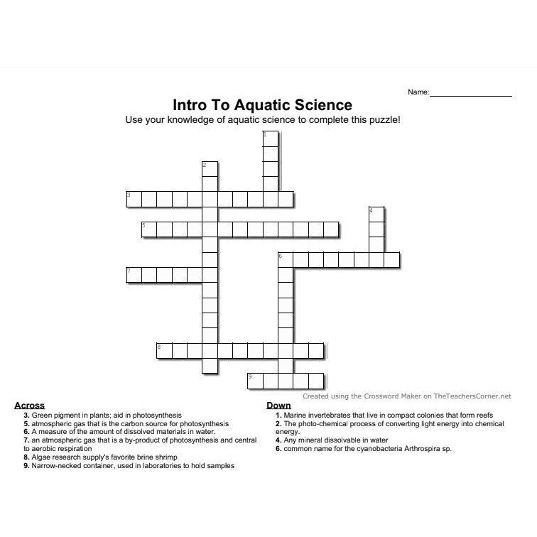 Activity A Aquatic Ecosystem Crossword Wordmint